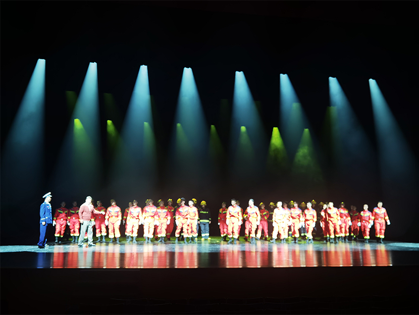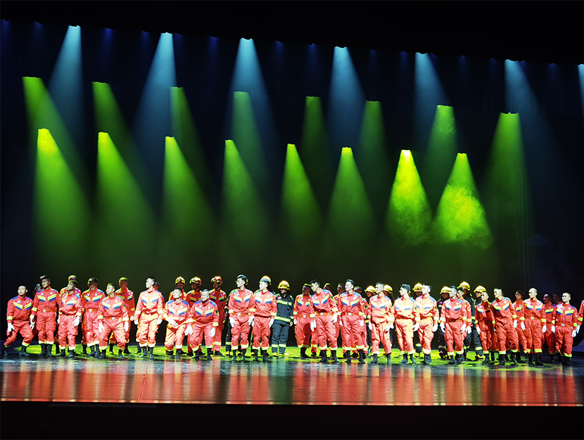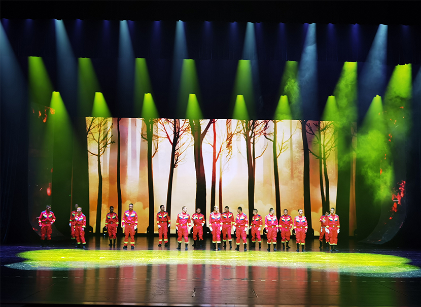 演出現場,歌舞《天下平安》《逆行者》《讓生命在陽光中燃燒》等節(jié)目從不同側面展現了消防指戰(zhàn)員初心如磐、使命在肩的堅定信仰,刻畫出一幕幕消防指戰(zhàn)員堅持生命至上、人民至上,浴火奮戰(zhàn)、救人于危難的畫面,同時表演將消防安全知識和消防文化融入其中。