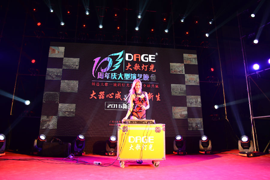 大歌燈光,創(chuàng)立于2006年,公司恒于創(chuàng)新—品質(zhì)—服務(wù)的理念發(fā)展至今擁有自主投資建造的—大歌科技園,建筑面積13000平方,擁有二百多名大歌人。大歌數(shù)年來(lái)專(zhuān)注從事研發(fā)光束燈,光束圖案燈系列產(chǎn)品,近三年大歌側(cè)重于打造“變形金剛”家族系列產(chǎn)品有:440W巨無(wú)霸;330W猛獸俠;330W通天曉;330霸天虎;330W轟天炮;230W威震天;440/330大炮王(追光燈)以及LED系列舞臺(tái)燈具,大歌擁有雄厚研發(fā)能力及生產(chǎn)規(guī)模,立足于:鑄造大歌一流的燈光品牌,全球共贏!DAGE是一家集自主研發(fā),生產(chǎn),銷(xiāo)售,服務(wù)于一體的重點(diǎn)新技術(shù)企業(yè),產(chǎn)品以高性?xún)r(jià)比之王的譽(yù)稱(chēng)而贏銷(xiāo)全球。