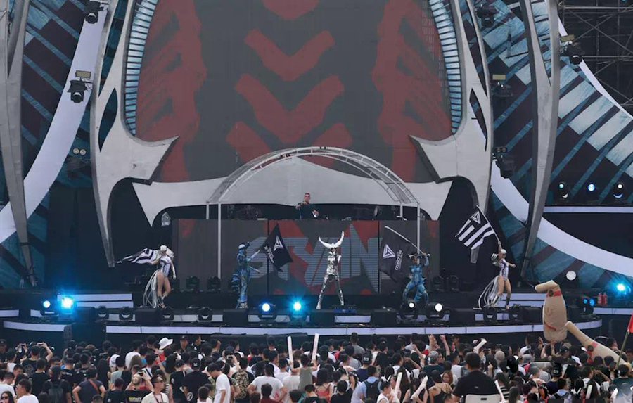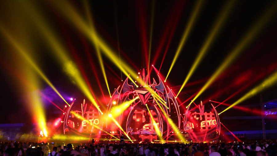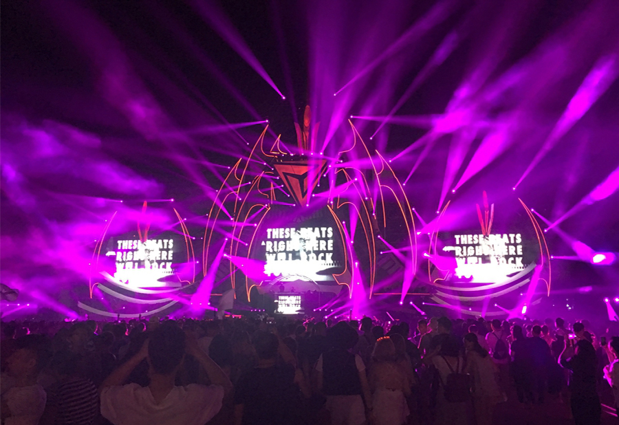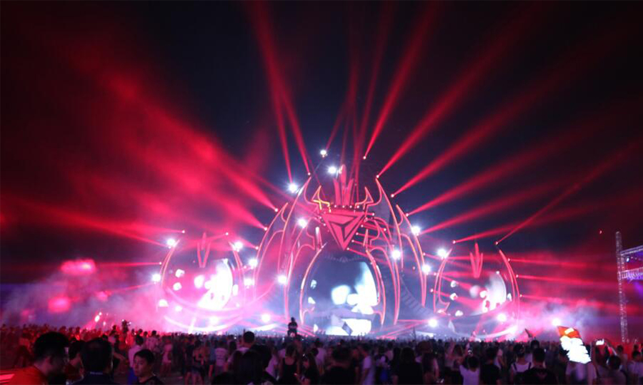 都說電音節(jié)是一場彰顯個性的狂歡盛宴,此言一點不假。演出舞臺,被它們新(ku)穎(xuan)的造型驚呆了,今年成都站繼續(xù)延續(xù)了去年外星戰(zhàn)艦飛船的概念,舞臺如變形金剛機(jī)器人般高大尚致極,更猶如 一座拔地而起的外星城堡,配合絢麗多彩的燈光效果,讓人宛若置身星河宇宙之間,這個舞臺上主光束采用了大歌燈光“變形金剛產(chǎn)品之一330W轟天炮(高亮度的光束燈)”,DAGE炫酷的燈光舞美效果讓現(xiàn)場數(shù)萬人狂歡-勁爆起舞 。