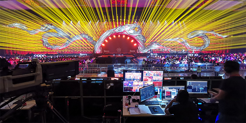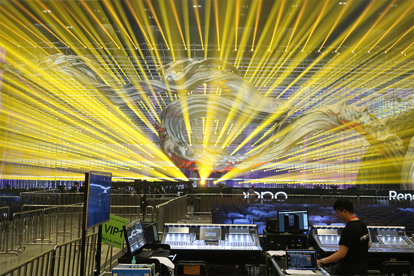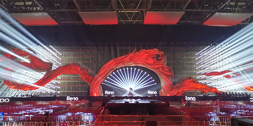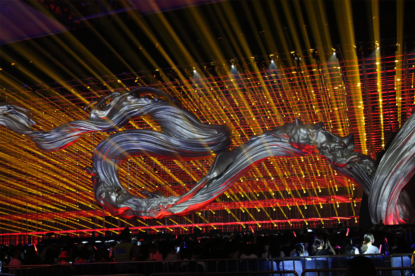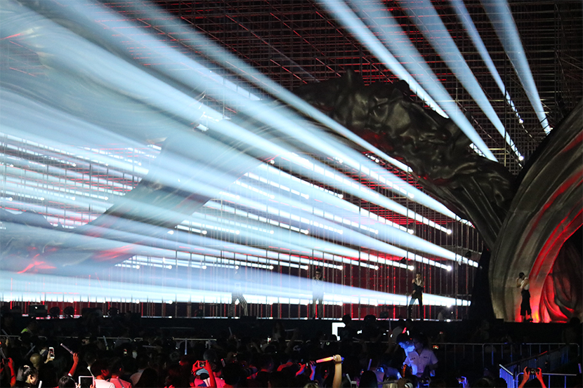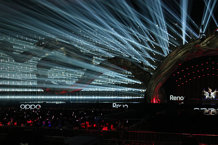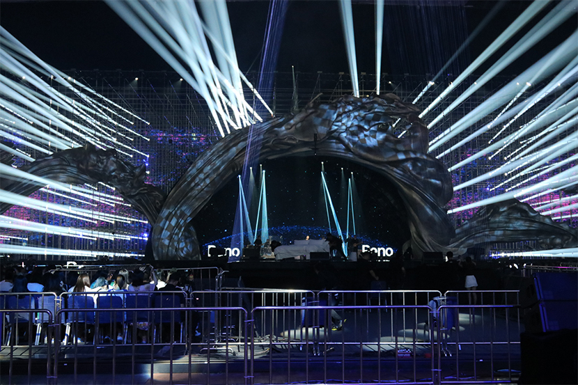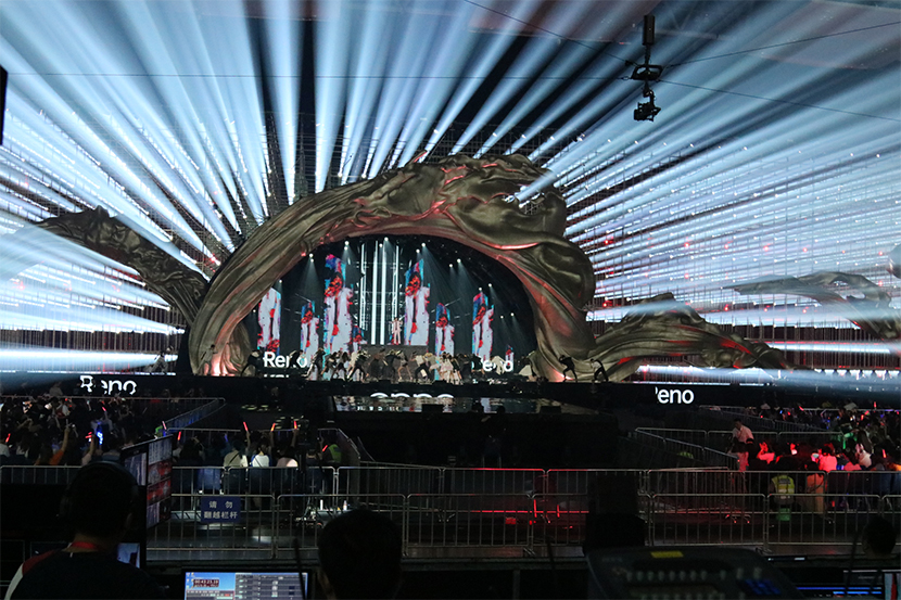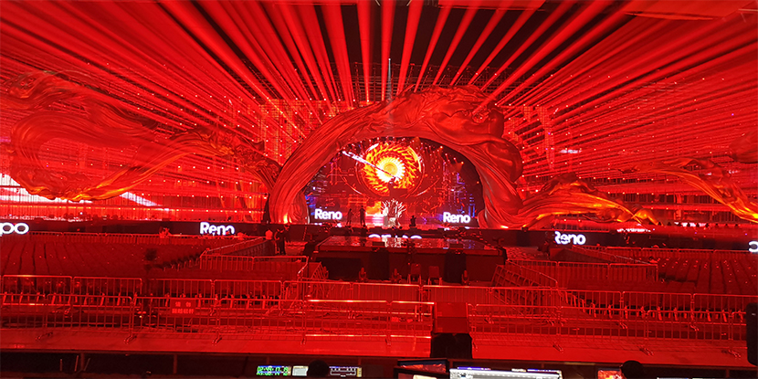 龐大的雷亞架舞臺(tái)都需要燈光與屏幕去支撐,這次舞美與燈光做了大膽的突破性設(shè)計(jì),舞臺(tái)以120米寬的雕塑為主,讓雷亞架整體成為舞臺(tái),需要燈光效果去填充舞臺(tái)空間。