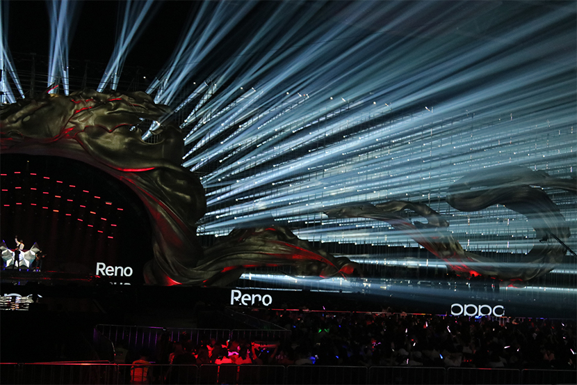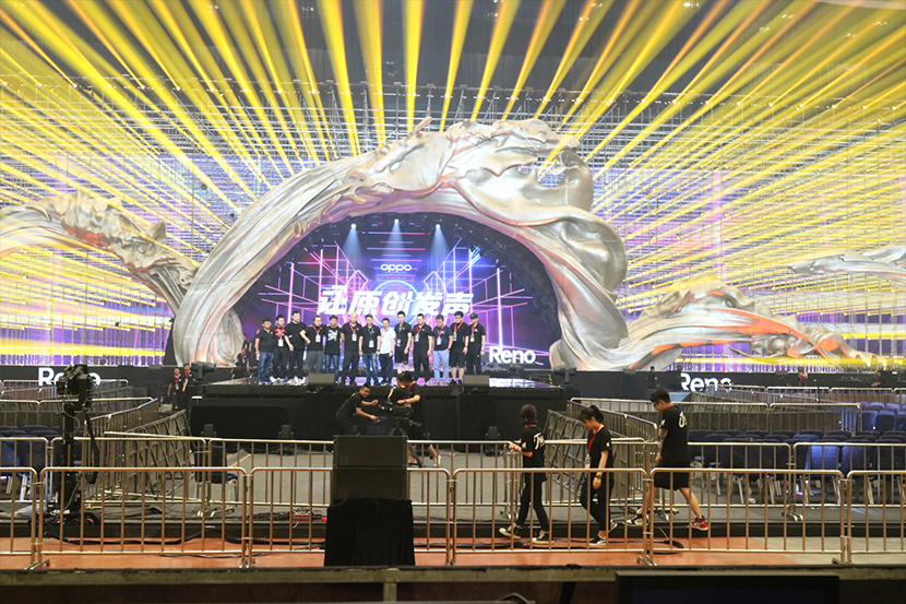 從內(nèi)部打破雷亞架,硬性結(jié)構(gòu)之中“橫沖直撞”而出的是柔美、奢華的嘉年華式飄帶造型,像DNA螺旋狀的飄帶也寓意著音樂(lè)原創(chuàng)力量的DNA會(huì)一直傳承下去。舞臺(tái)看上去像打破平行世界后的夢(mèng)想之城,具有藝術(shù)感,更增強(qiáng)儀式感,增加樹(shù)立業(yè)內(nèi)權(quán)威力,為原創(chuàng)音樂(lè)榮譽(yù)加持。